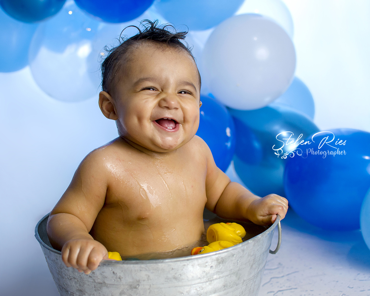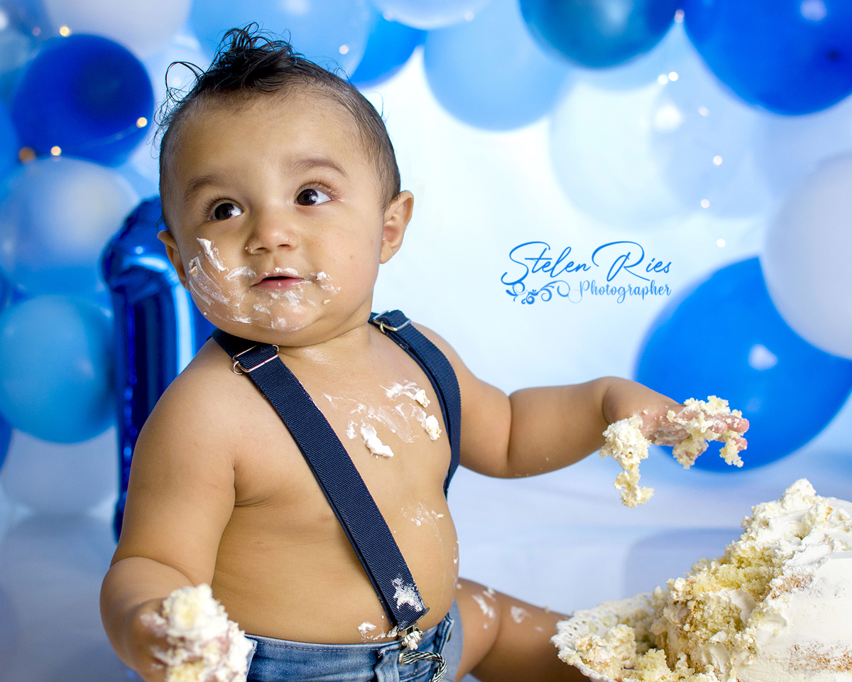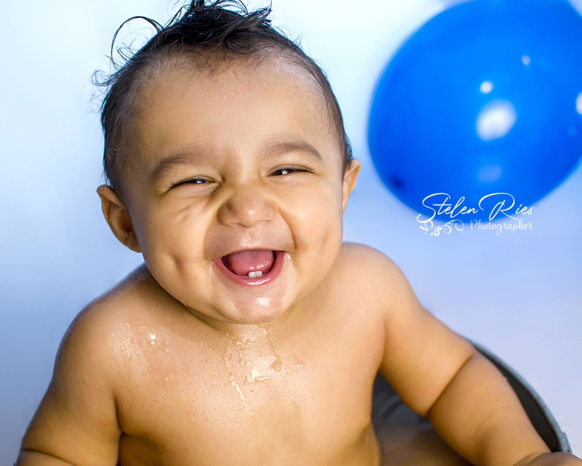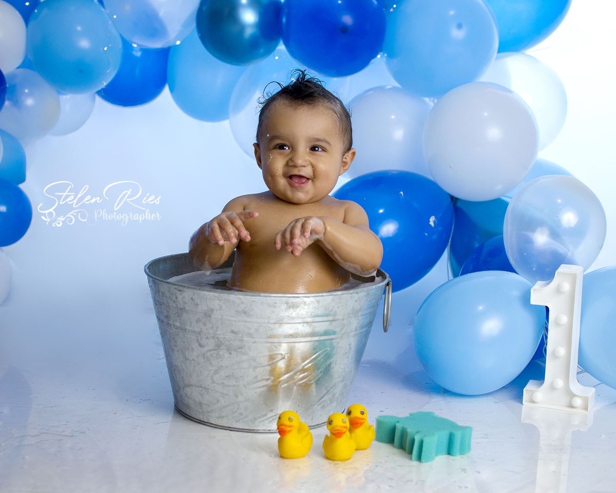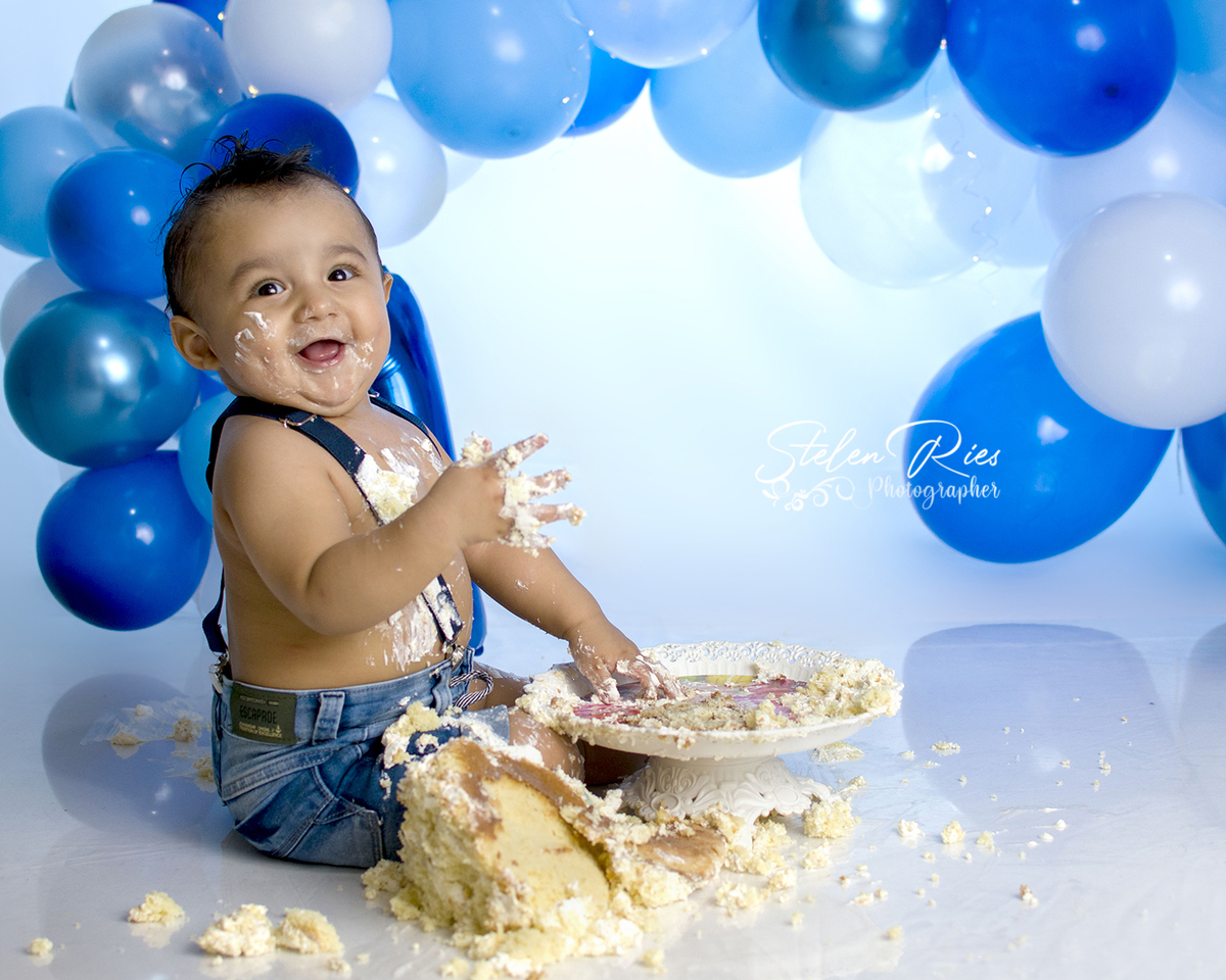 Lindão, menino feliz, adorou destruir o bolo, e no banho até dancinha teve...
